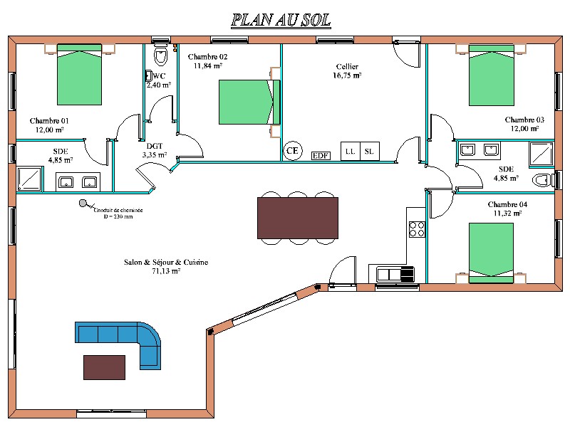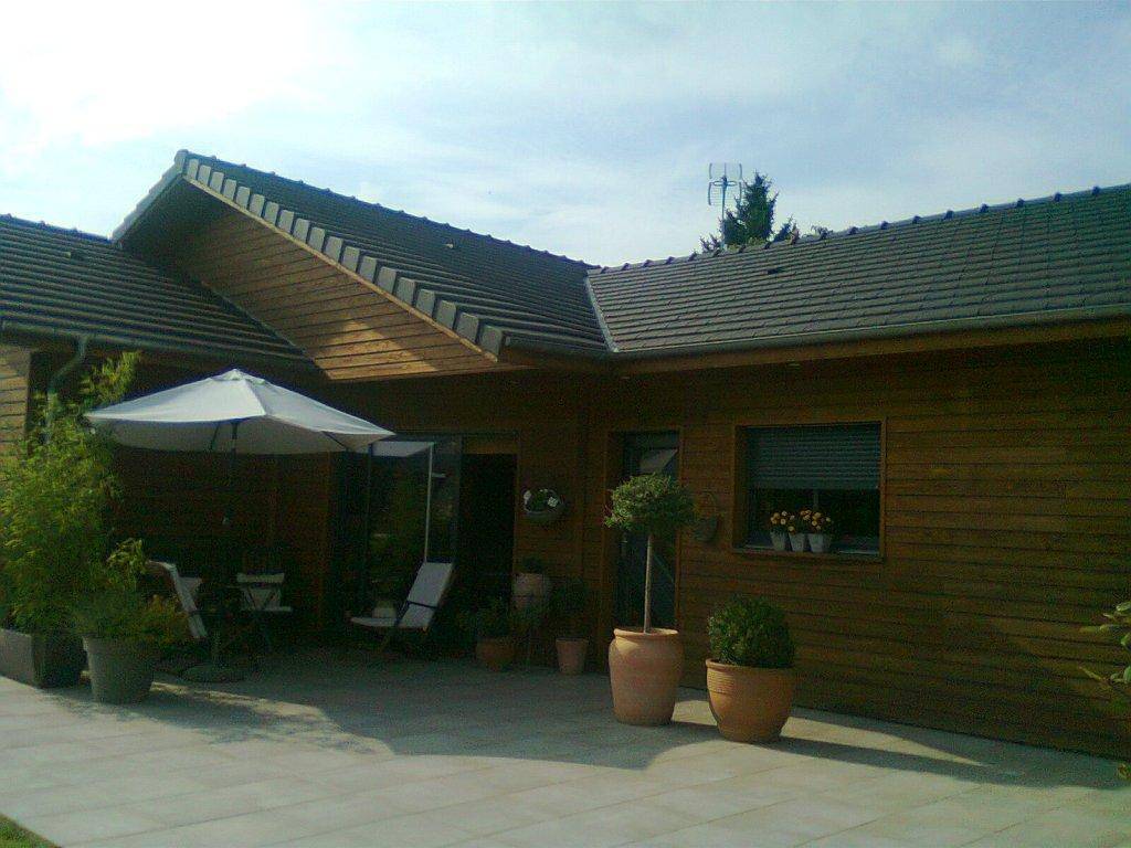 COGEBOIS livre toutes les fournitures nécessaires à la construction et permet de bâtir sa maison soi-même tout en garantissant robustesse et résistance. Cette maison spacieuse de 150.49m² habitable procure à ses propriétaires la convivialité et la luminosité recherchée. La couleur miel de son bardage, ses menuiseries en aluminium et ses tuiles romanes rendent la maison moderne tout en respectant le style de la région.