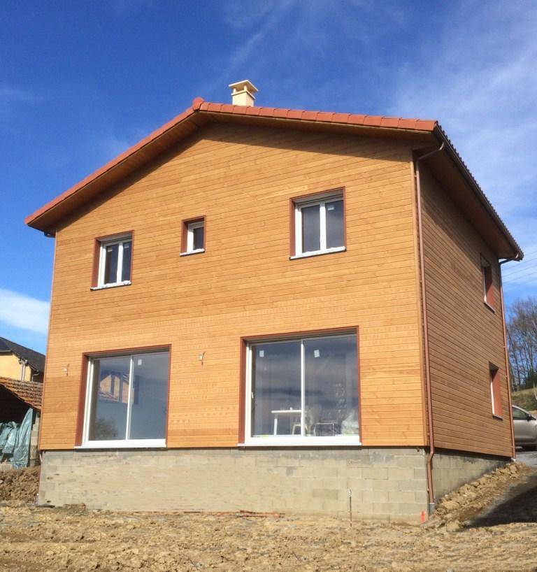 L’équipe COGEBOIS met à votre disposition un vaste choix de couleurs et de textures afin de concevoir la maison de vos rêves. Ici une maison bois hors d’eau hors d’air avec étage d’une surface de 133.29m². On compte au total 66.98m² de surface habitable en rez-de-chaussée comprenant une salle à manger, une cuisine, un salon, une salle de bain, une buanderie et une chambre avec dressing. A l’étage, une grande mezzanine de 62.75m² de surface habitable. Cette maison se veut agréable et chaleureuse grâce à sa teinture en douglas incolore et ses menuiseries en PVC blanc en totale harmonie avec ses tuiles à ondes rouge.