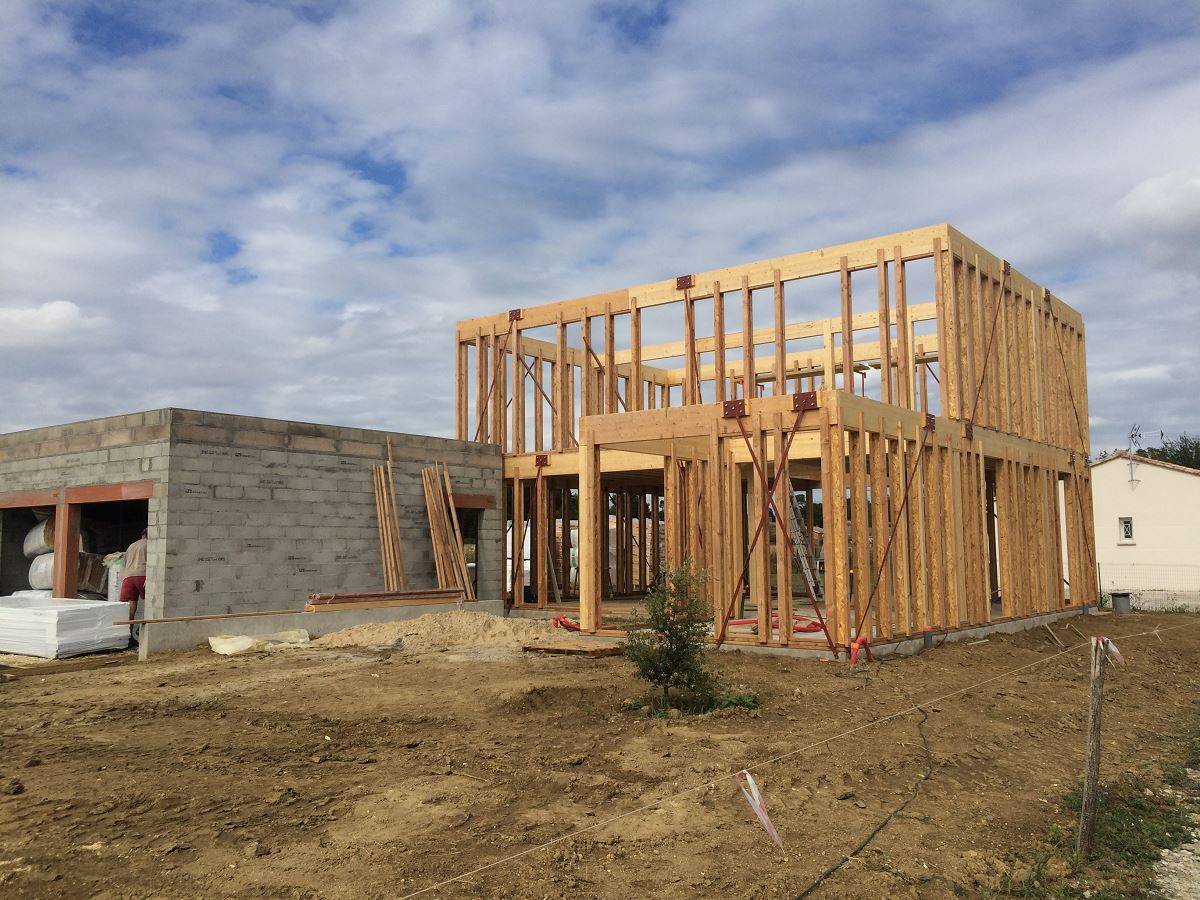 Maison en ossature bois à étage avec double garage avec le respect de la RT2012