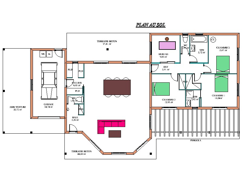 Bois extérieur : bois exotique (BADI) saturé couleur miel