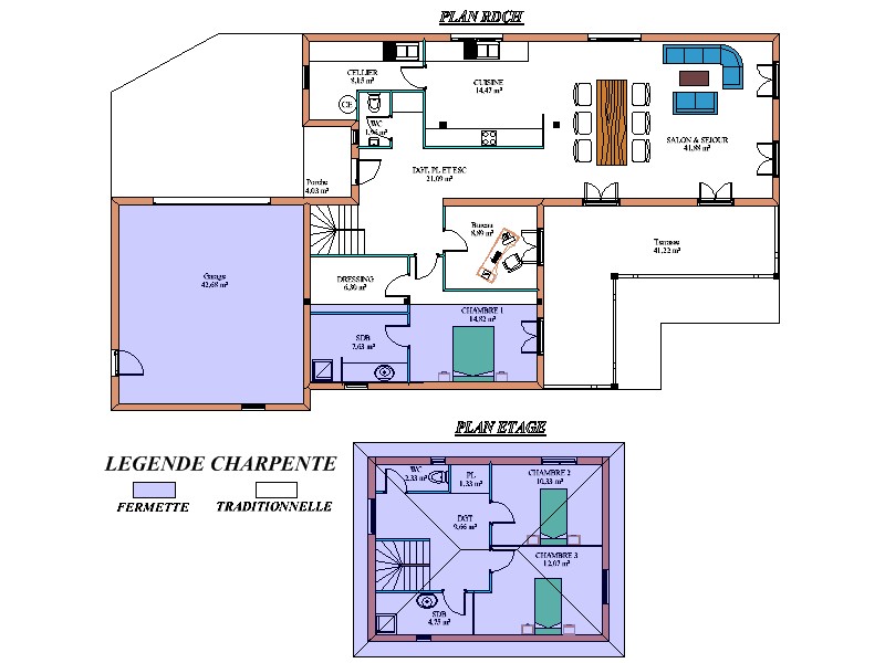 Construite avec des matériaux de qualité supérieure, cette maison répond aux normes les plus strictes en matière de construction. La charpente mixte fermette-traditionnelle garantit une robustesse et une longévité exemplaires. La couverture en tuile romane rouge apporte une touche de cachet et de tradition à la maison tout en assurant une parfaite étanchéité. Le bardage extérieur en douglas posé verticalement avec couvre-joint confère à la maison une esthétique chaleureuse et intemporelle, tout en la protégeant durablement des intempéries. Les menuiseries en bois et les volets persines apportent une touche d'authenticité et de charme à la maison.
