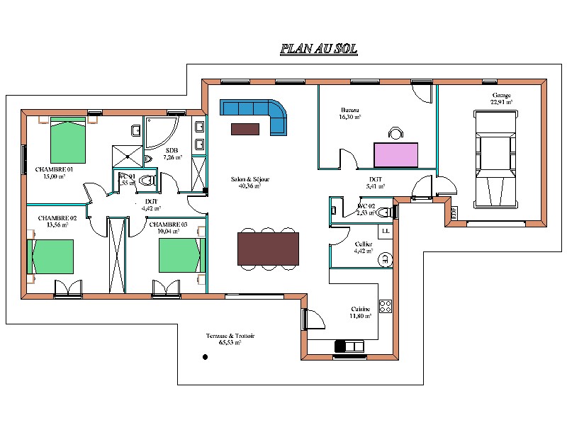 Avec une surface hors d'eau hors d'air de 241,36 m² et une surface habitable de 117,50 m², cette maison propose un espace de vie confortable et bien agencé. La charpente ferme assure robustesse et durabilité, tandis que la pente de toit de 35% donne à l'ensemble une allure traditionnelle et esthétique. La couverture en tuile romane rouge vieillie s'intègre parfaitement à l'environnement et apporte une touche de caractère à la maison.
