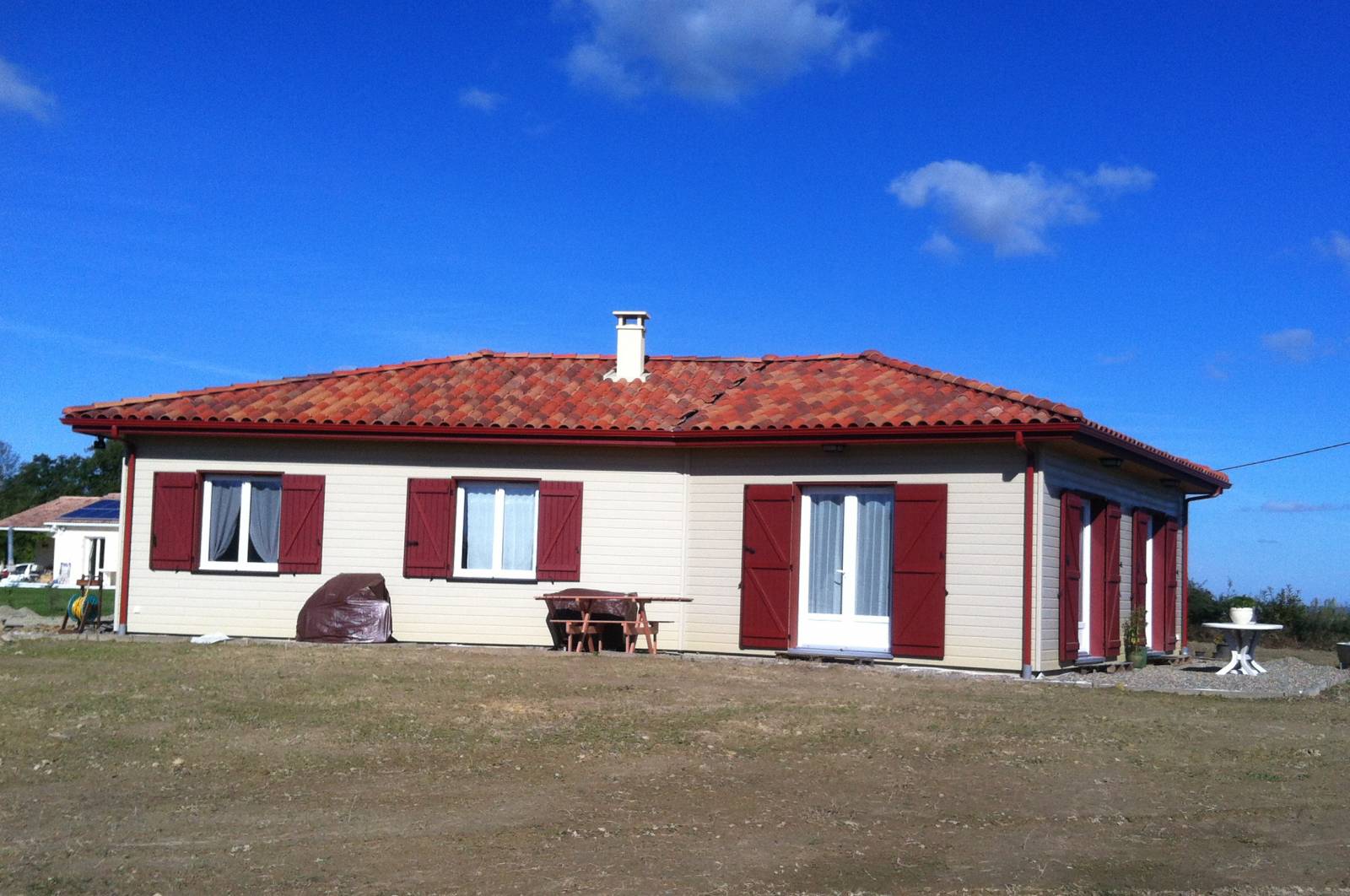 Le bardage extérieur en clin bois couleur "beige Périgord" confère à la maison une allure chaleureuse et accueillante. Cette couleur s'harmonise parfaitement avec l'environnement naturel environnant, créant une atmosphère paisible et relaxante.