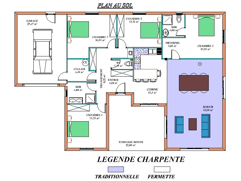Les menuiseries mixtes (bois, PVC, aluminium), la couverture en tuile plate noire et la terrasse en béton complètent ce tableau harmonieux. Réalisée par des artisans locaux, cette maison est le fruit d'un savoir-faire artisanal et d'un engagement pour la qualité.