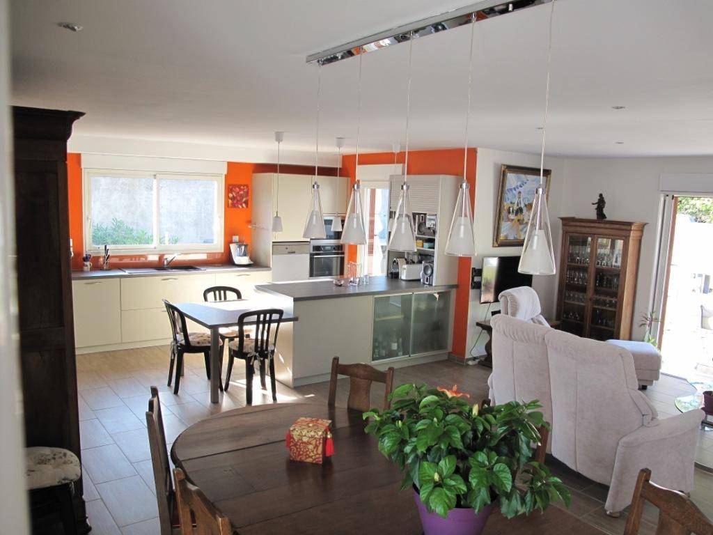 Sa Surface emprise au sol est de 178 m² pour une Surface habitable de 146 m² ; la pente de toit de cette maison citadine est de 35% avec une charpente en Fermettes et sa Couverture avec des Tuiles à ondes ; ses Menuiseries extérieures sont en PVC blanc ; son Bardage extérieur est du clin couleur.