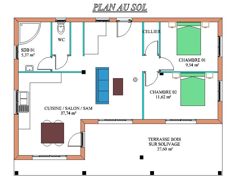 Pente de toit : 60 %