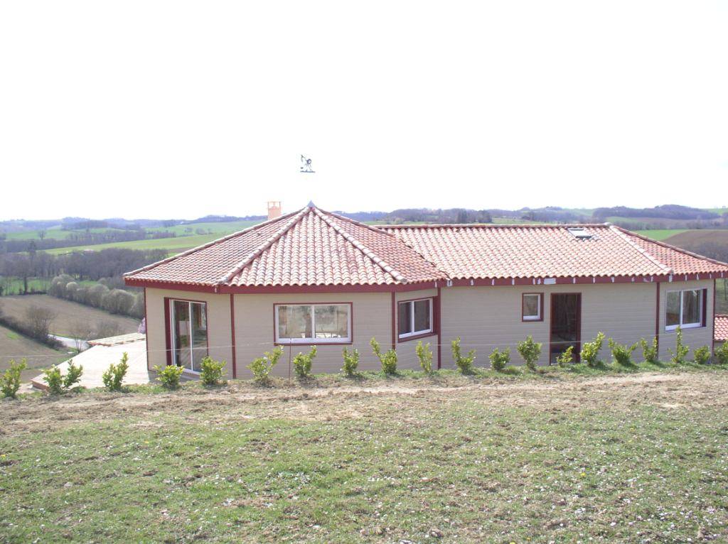 COGEBOIS vous présente une maison ossature bois près d'Auch avec une surface hors d’eau hors d’air de 214,67 m² pour une surface habitable de 124,43 m². Ce projet est réalisé avec une charpente Traditionnelle ayant une Pente de toit de 35 % recouverte de tuile romane rouge. Le bardage extérieur est en bois reconstitué en couleur ; tous les types de menuiseries sont utilisés : Bois, PVC et Aluminium.