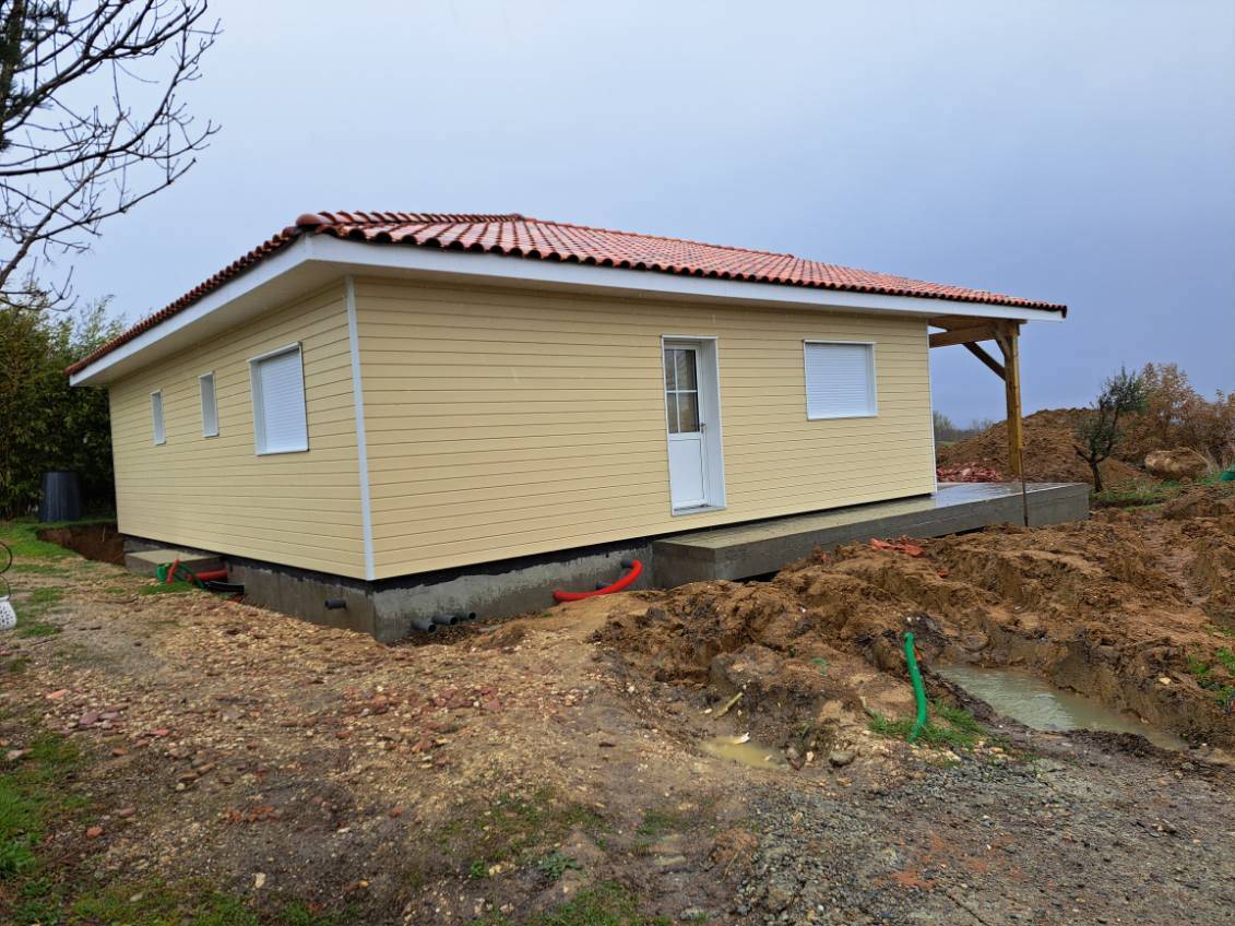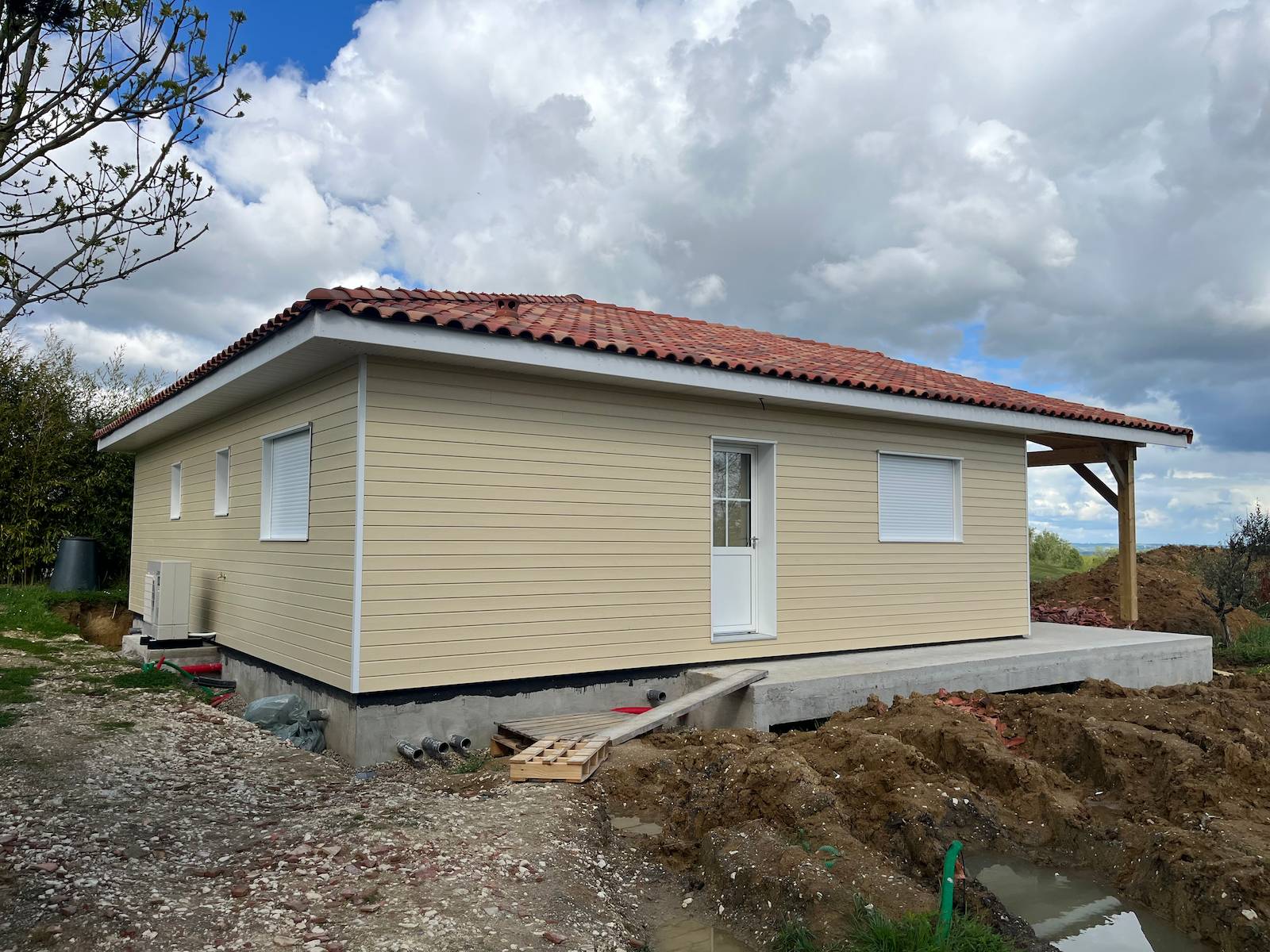 Située à quelques kilomètres d’Agen, en zone UD du PLUi, cette nouvelle maison individuelle de plain-pied développe une emprise au sol de 152 m², complétée par une terrasse bétonnée de 43m² orientée Est, offrant un prolongement naturel des espaces de vie vers le jardin.