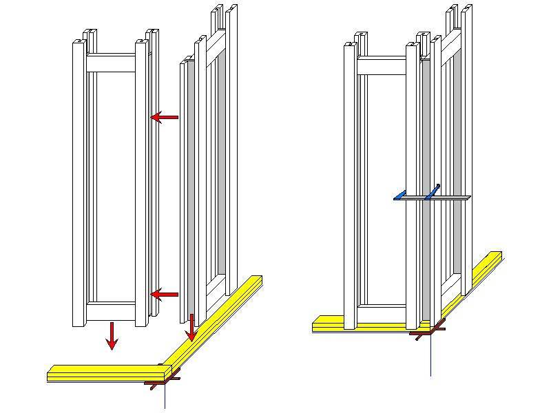 Pose des cadres en ossature bois sur la lisse basse